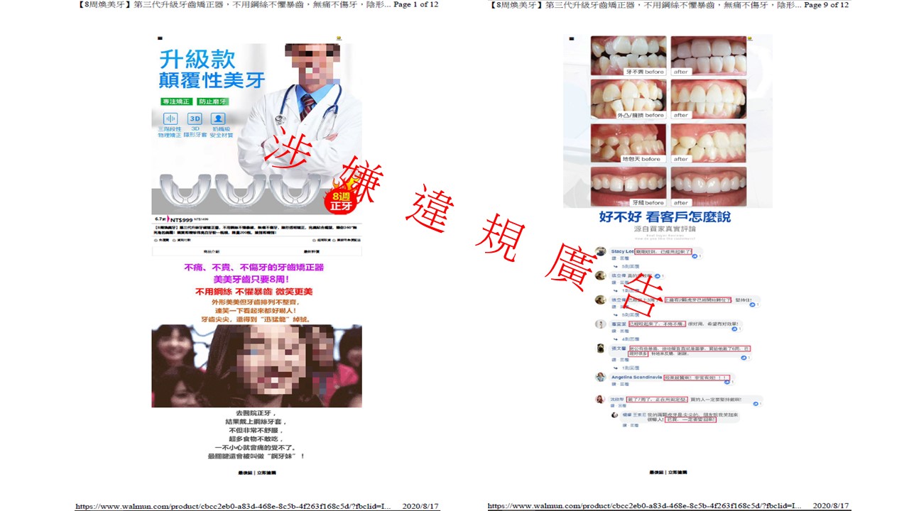 國外網站涉嫌違規廣告產品:牙齒矯正器