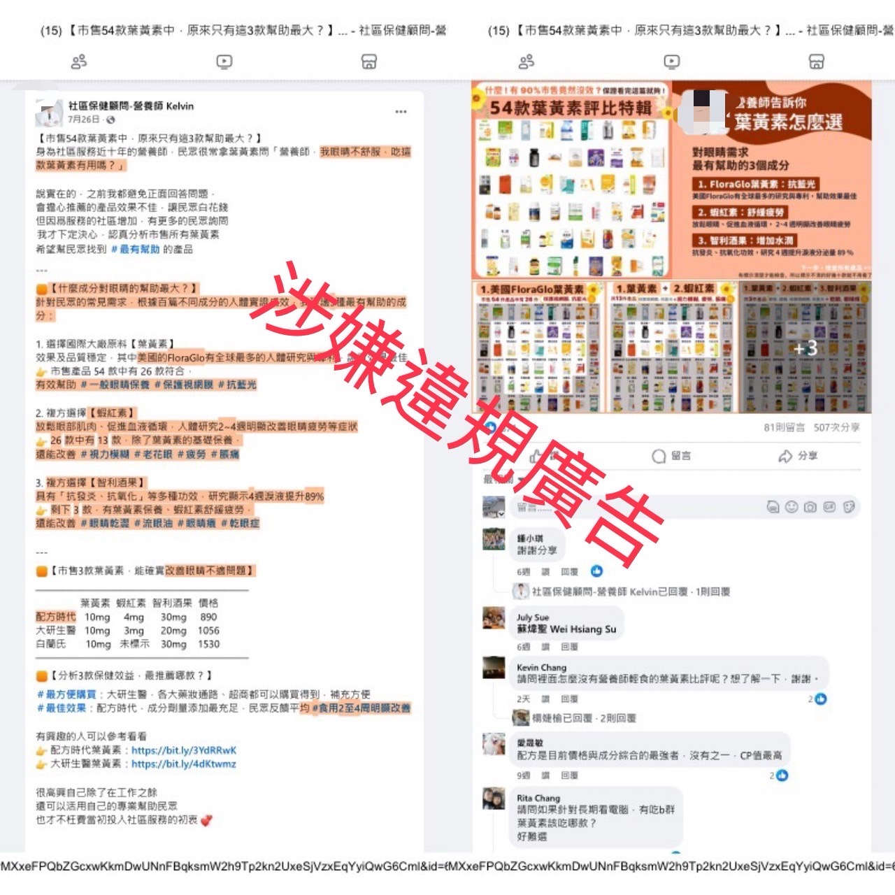 | 涉嫌違規宣稱詞句 | 我眼睛不舒服,吃這款葉黃素有用嗎?」---【什麼成分對眼睛的幫助最大?】針對民眾的常見需求,根據百篇不同成分的人體實證成效,我建議3種最有幫助的成分:1. 選擇國際大廠原料【葉黃素】效果及品質穩定,其 |