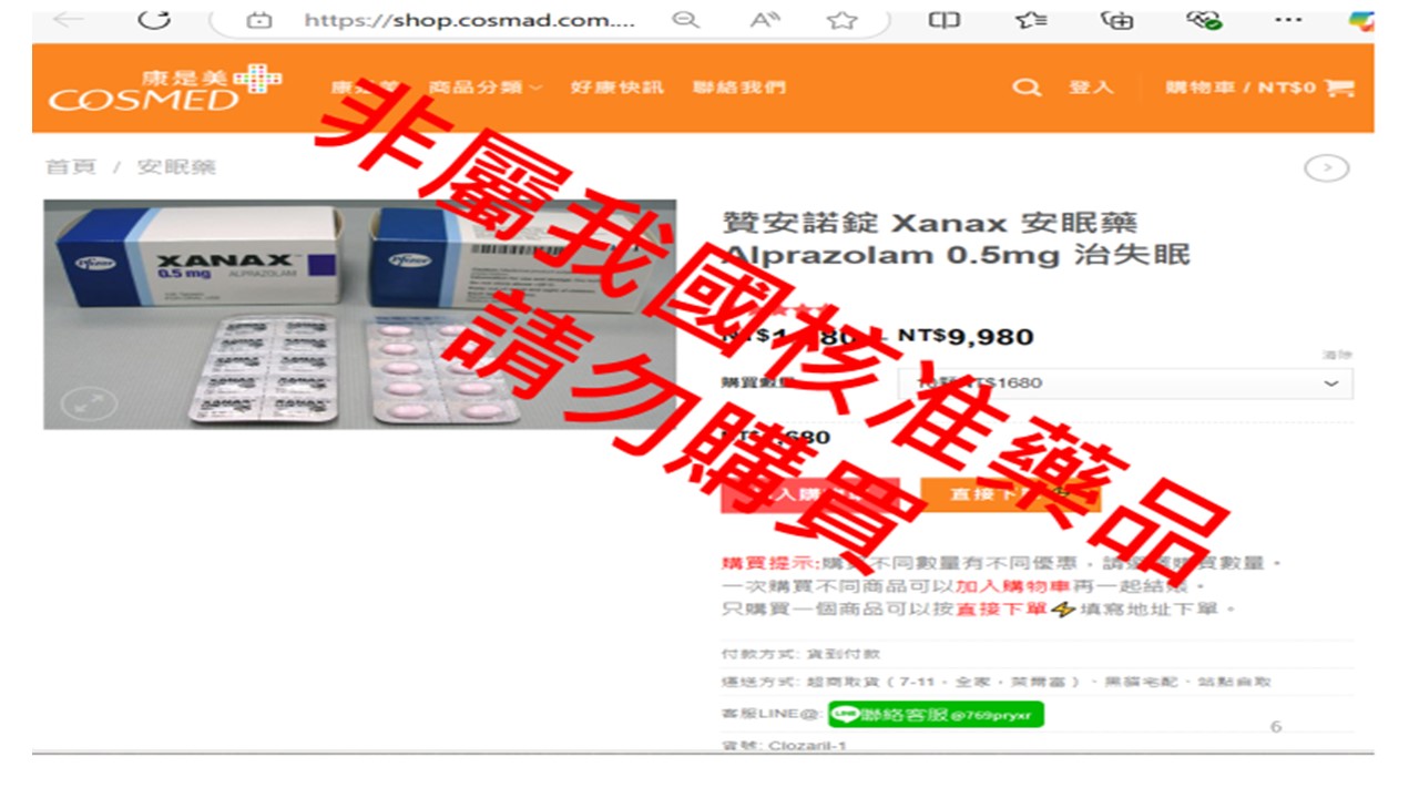涉嫌違規網址 https://shop.cosmad.com.tw/product/xanax