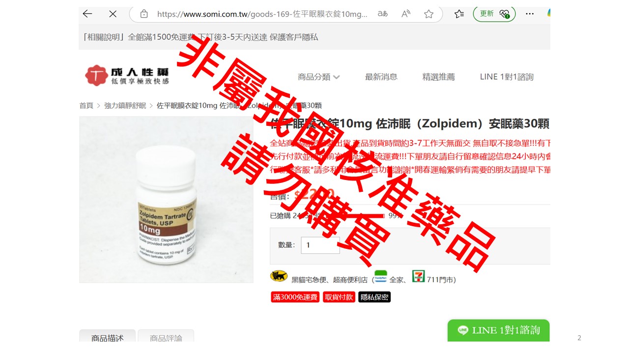 管制藥品皆屬醫師處方用藥,不得於網路販售,民眾如有疾病所需,須經醫師診療後方能憑其處方調劑供應,食藥署呼籲民眾切勿購買來路不明之產品。