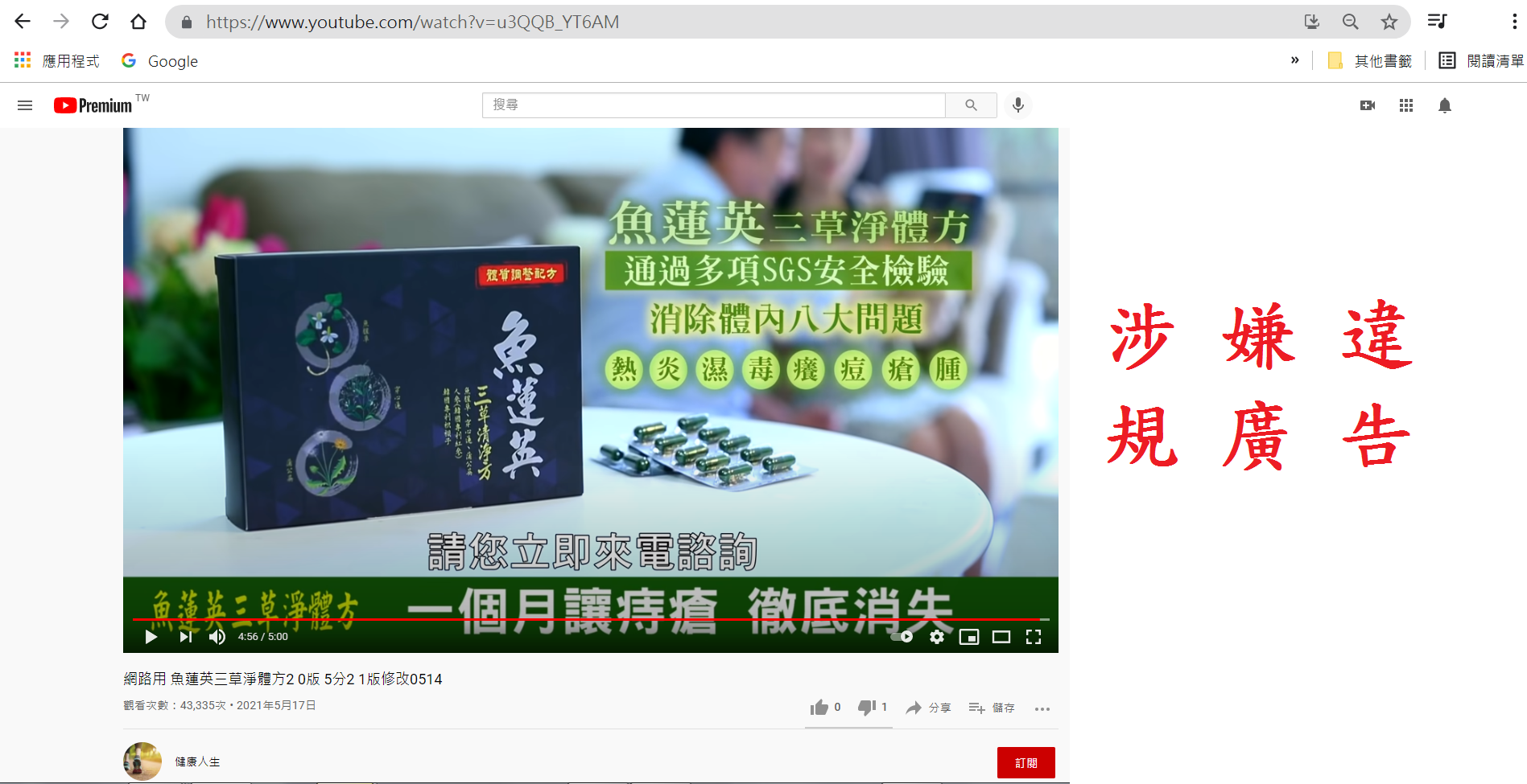 | 涉嫌違規網址 | https://www.youtube.com/watch?v=u3QQB_YT6AM |