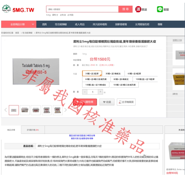 產品名稱 Tadalafil等藥品