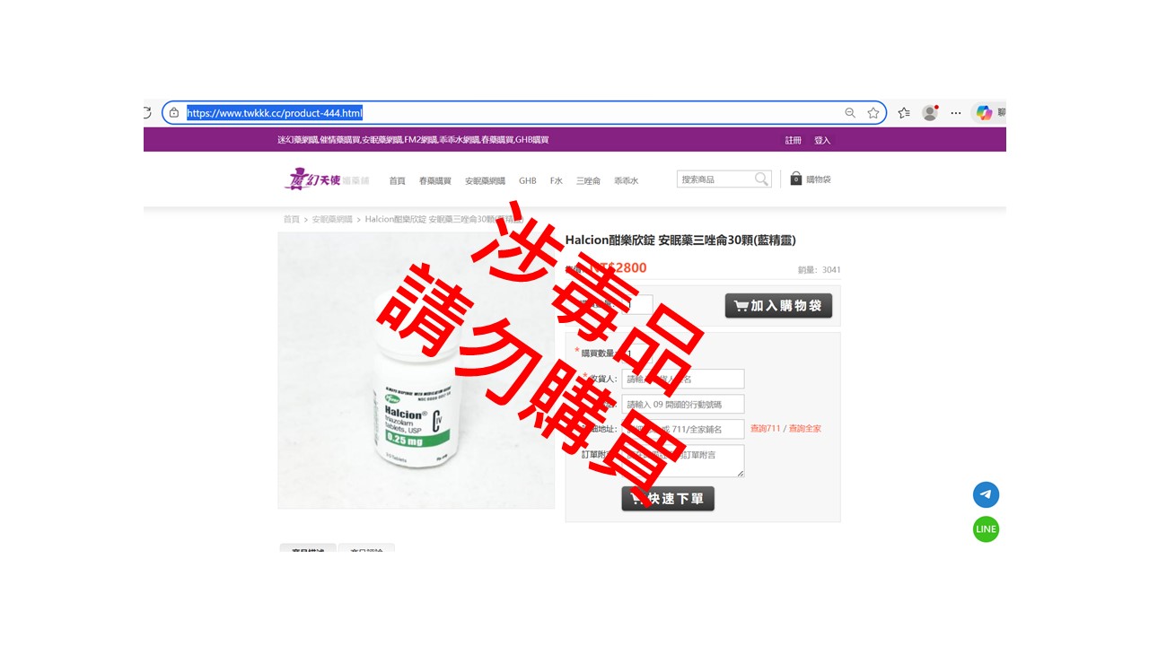 管制藥品皆屬醫師處方用藥,不得於網路販售,民眾如有疾病所需,須經醫師診療後方能憑其處方調劑供應,食藥署呼籲民眾切勿購買來路不明之產品。