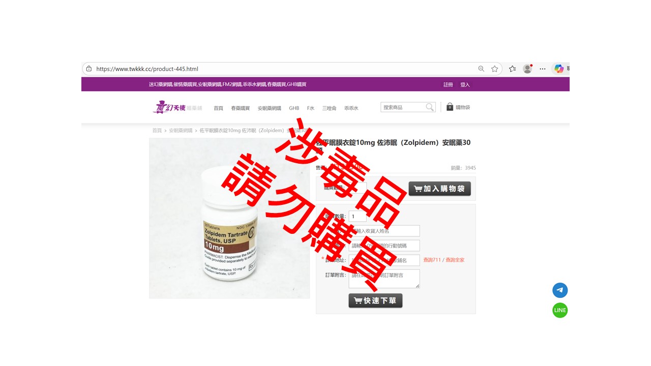管制藥品皆屬醫師處方用藥,不得於網路販售,民眾如有疾病所需,須經醫師診療後方能憑其處方調劑供應,食藥署呼籲民眾切勿購買來路不明之產品。