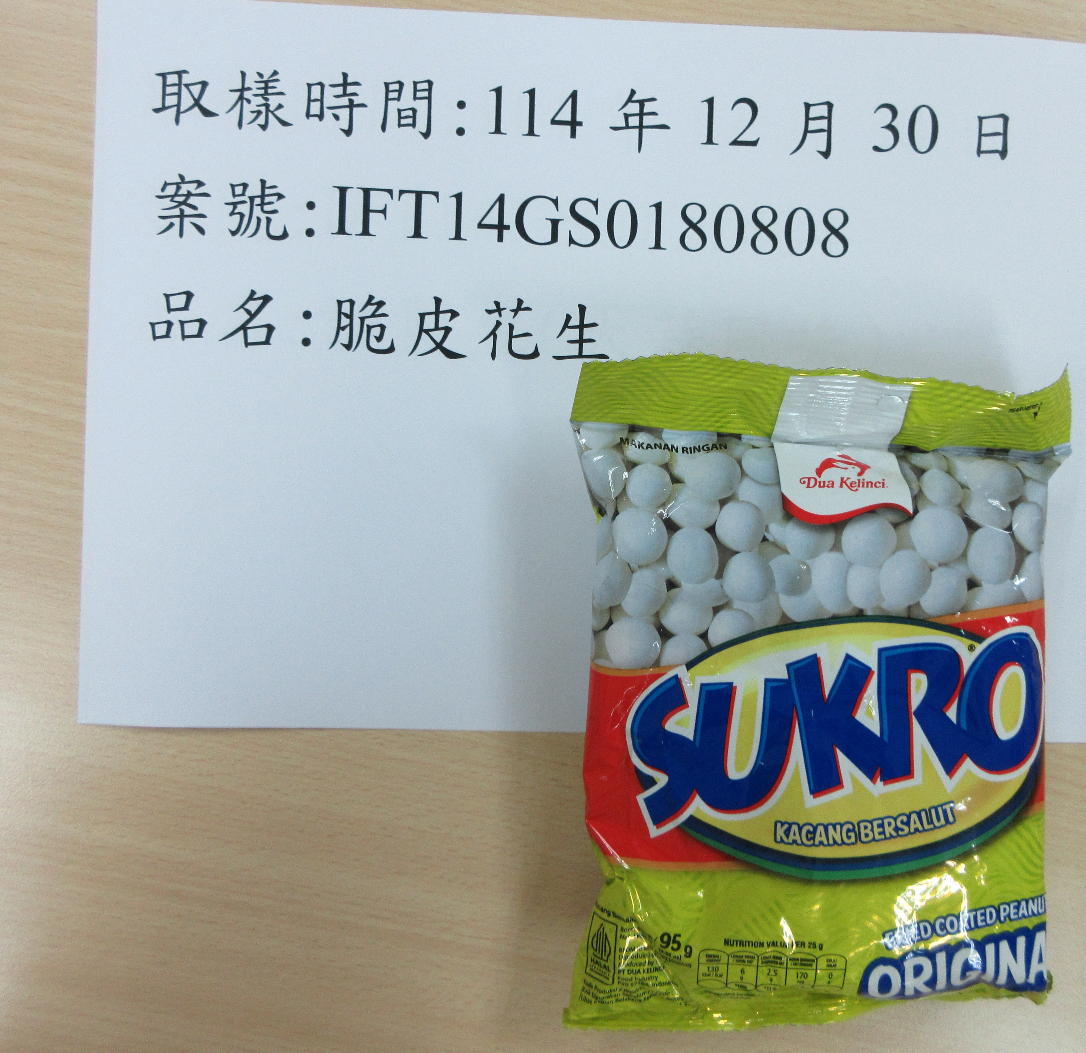 依據「食品中污染物質及毒素衛生標準」,供直接食用之花生、油籽、黃豆,及其加工產品,去殼,總黃麴毒素限量為4 µg/kg、黃麴毒素B1限量為2 µg/kg,不符合食品安全衛生管理法第17條規定。