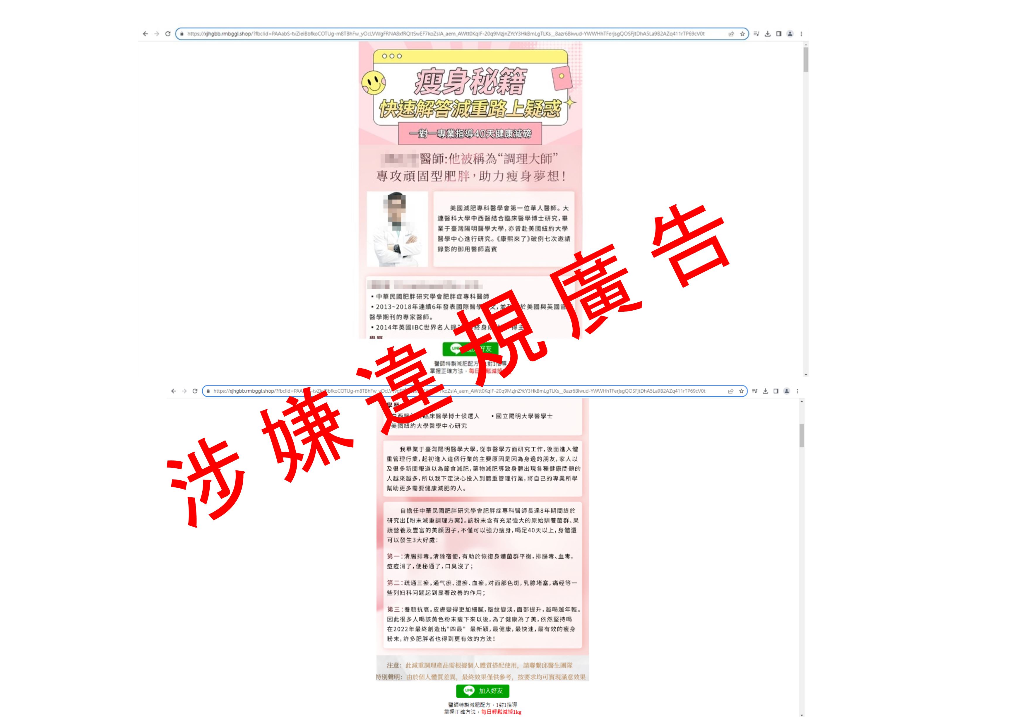 | 建議消費者 | 上述廣告涉嫌違規,提醒消費者勿信勿購買。 |