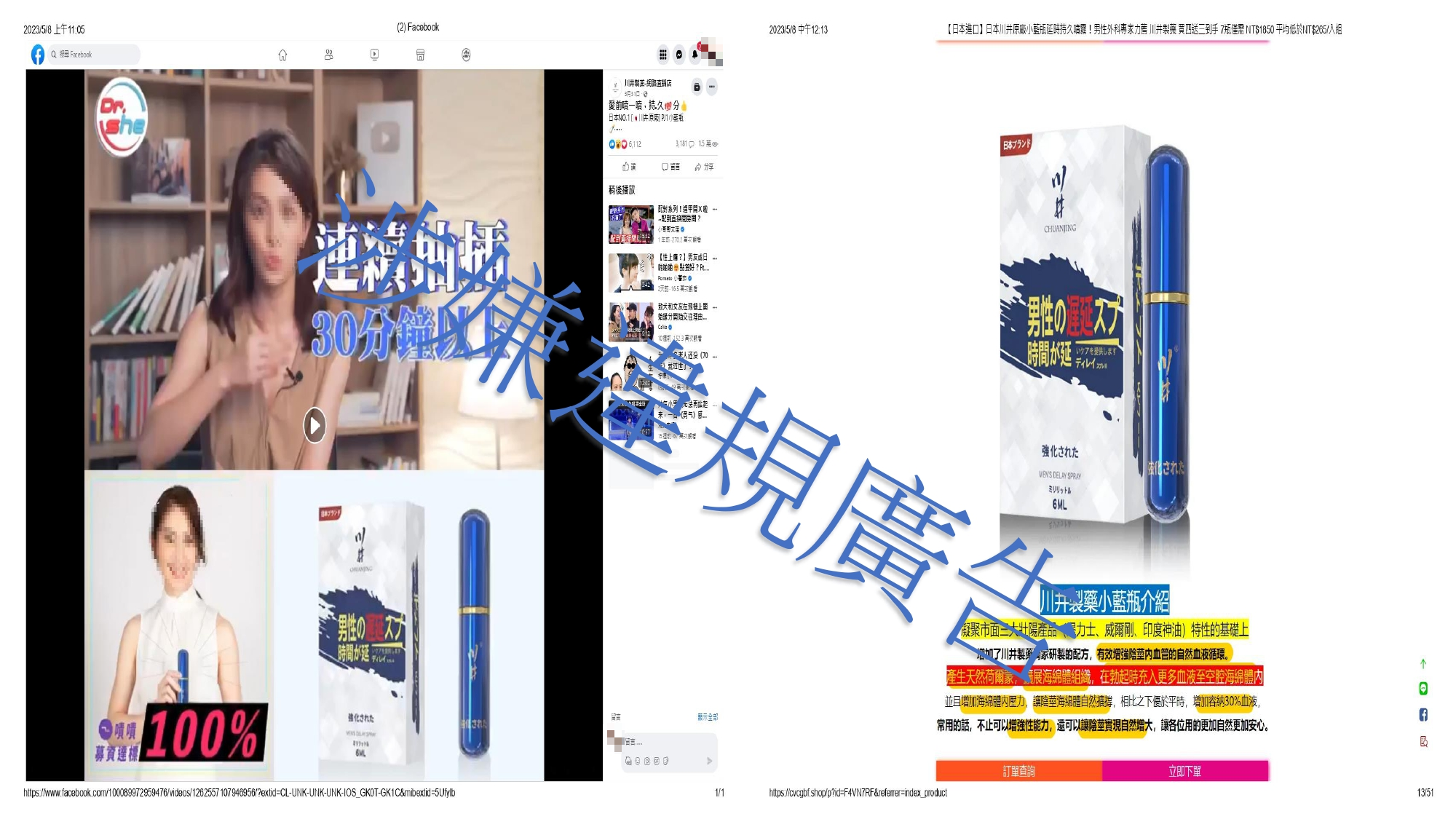 | 涉嫌違規宣稱詞句 | 「(影片)連續抽插30分鐘以上…強力延時30 分鐘…久插不軟真男人…小藍瓶強化第二代愛愛無需等待…愛前噴變大根…血液充滿空腔真正的滿腔熱血…(影片)…不含前戲…你要多硬就有多硬…你要什麼時候起來…就是 |
