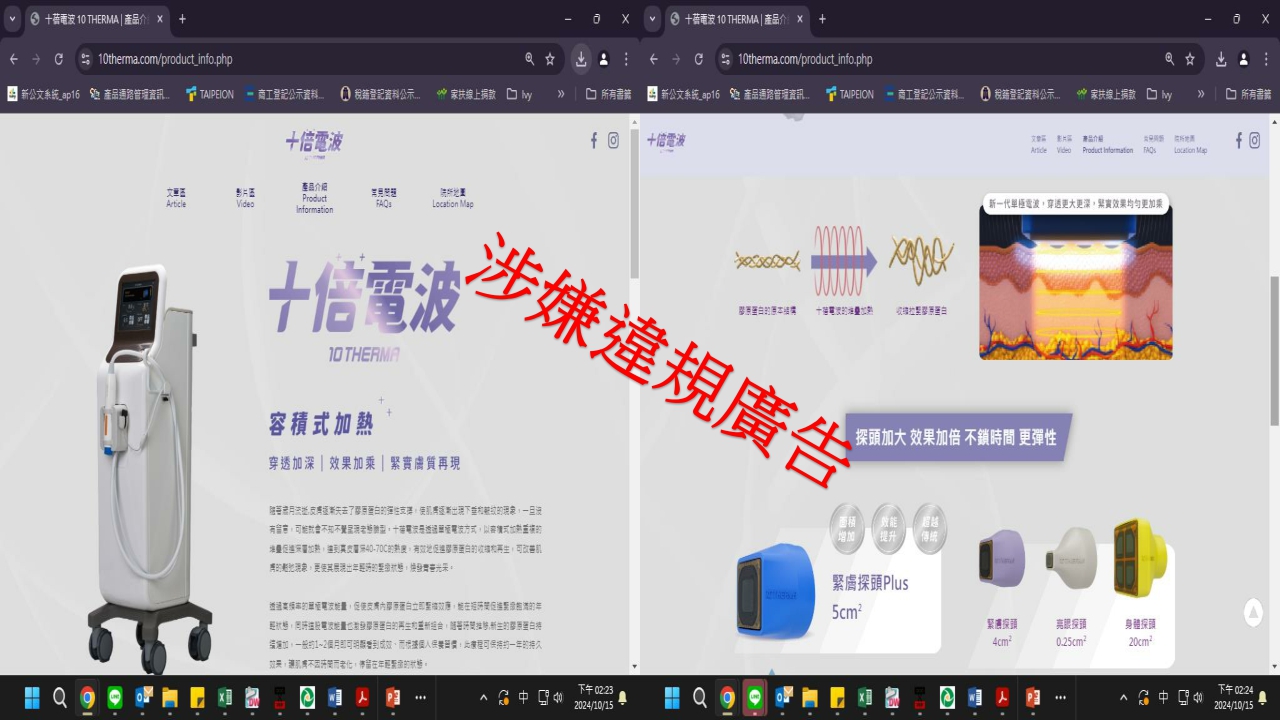 國外網站涉嫌違規廣告產品: 十倍電波10THERMA