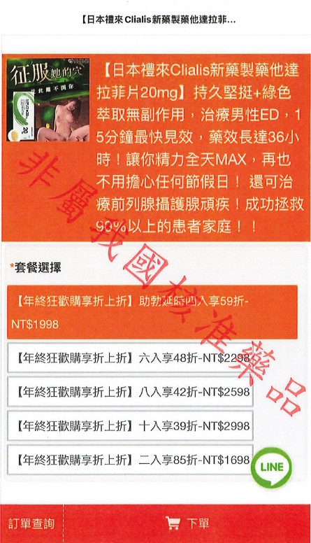 涉嫌違反法規 案內產品外包裝無中文標示及許可證字號,非屬我國核准藥品,倘販售未經核准製造或輸入藥品,則涉違反藥事法第83條有關偽禁藥之規定。
