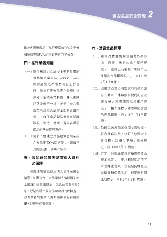 2鞏固食品安全管理 77 六、落實食品標示 四、提升業者知能 111 71 1,699 QA 112 1 1 6 113 7 1 五、督促食品業者落實個人資料 112 7 1 之保護 6 25